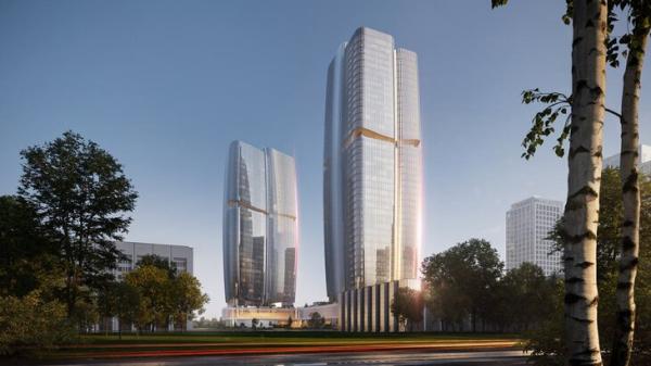 Архитектурный облик БЦ строится на контрасте пластичной горизонтали и вертикали. Сами башни имеют скругленные и вытянутые силуэты, что визуально смягчает их высоту и объем. При этом горизонтальный пояс на фасадах зафиксирует разрыв между функциональными уровнями и подчеркнет многоуровневую структуру, сказал главный архитектор Москвы Сергей Кузнецов.