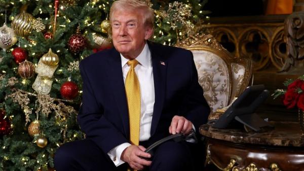 Трамп встречает праздник в своем имении во Флориде. Вместе с женой Меланией он сидел в большой комнате с рождественской елкой, под которой лежали подарки.