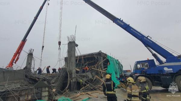 При этом уточнялось, что спасение людей осложняет сырой бетон, рассматривается вариант его «размытия» водой. На месте ЧП развернут оперативный штаб.