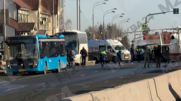 По данным столичного главка МВД, водителю микроавтобуса стало плохо за рулем, в результате чего он по касательной задел автобус. Затем машину развернуло, из-за чего в нее въехали еще несколько транспортных средств. Из-за аварии оказался заблокирован проезд по четырем из пяти полос движения.