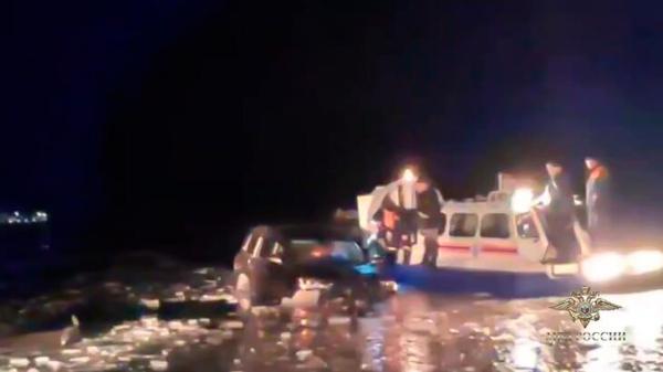 В результате автомобиль при помощи буксировочного троса вытащили на лед и транспортировали на берег.
