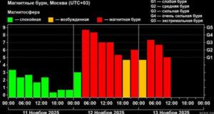 Фото: телеграм-канал "Лаборатория солнечной астрономии (XRAS)" Магнитная буря продолжается на Земле уже около 36 часов. Об этом ТАСС рассказал заведующий лабораторией солнечной астрономии и гелиофизического приборостроения отдела физики космической плазмы Института космических исследований РАН Сергей Богачев. По словам ученого, она завершится до конца четверга, 13 ноября. Очень сильная магнитная буря началась в ночь на среду, 12 ноября. Она связана с ...