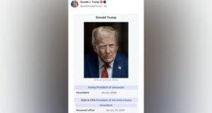 Фото: truthsocial.com/@realDonaldTrump Американский лидер Дональд Трамп опубликовал на странице Белого дома в Truth Social скриншот якобы из «Википедии», на котором указано, что он занимает пост исполняющего обязанности президента Венесуэлы. Согласно данному кадру, Трамп «вступил в должность» в январе 2026 года. Американская армия 3 января провела военную операцию в Венесуэле. В ходе нее были захвачены и вывезены из страны президент Николас ...